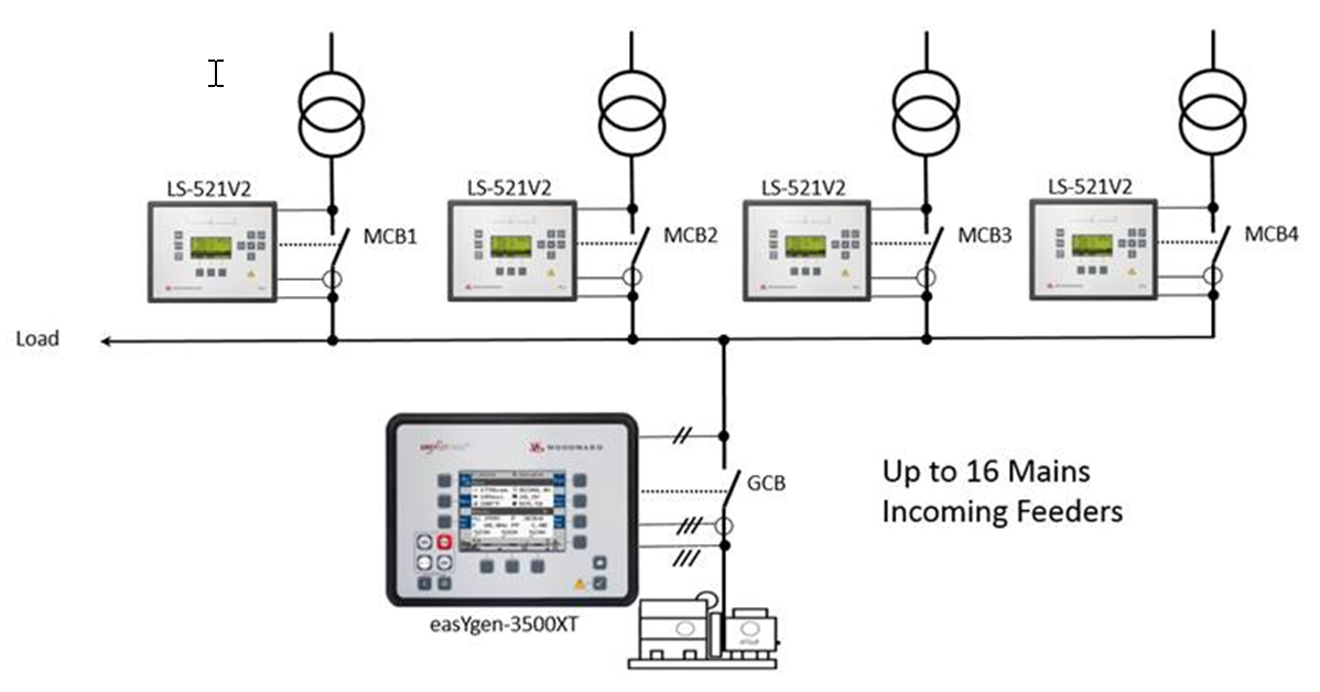 Import Export Control with n+1 incoming mains feeders equipped with LS-5 or LS-6XT controls - Knowledgebase / LS-5 - Power Management